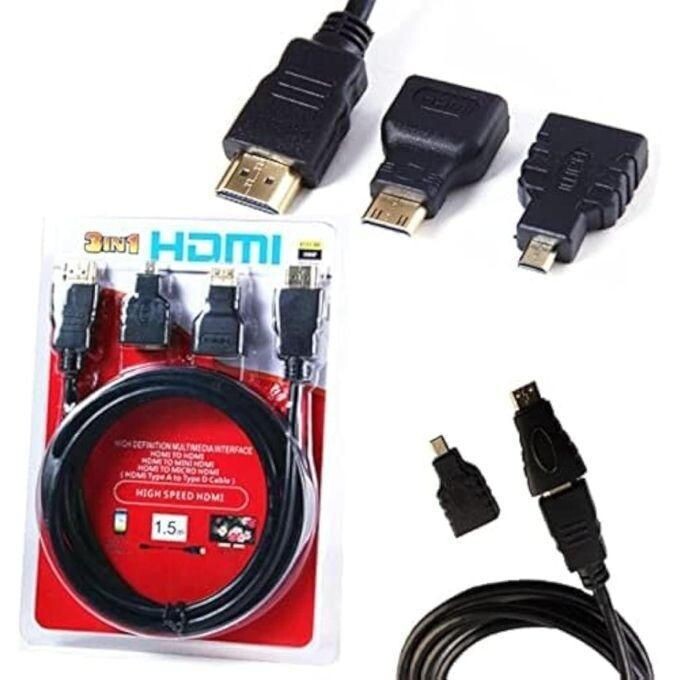1.5M 3 in 1 HDMI Cable HDMI to Mini Micro HDMI Adapter,