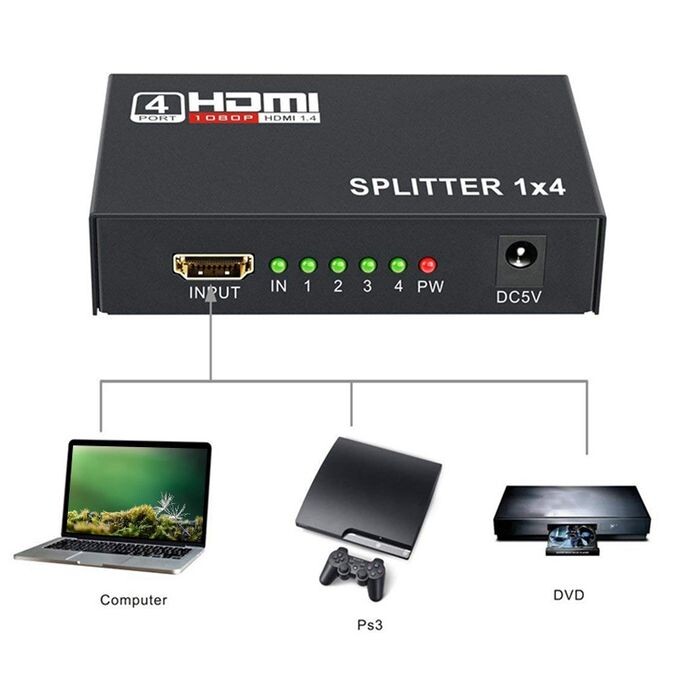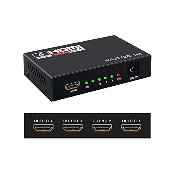 3D 4K 4-Port HDMI Splitter is the perfect solution for anyone who needs to send one source of digital high definition video to four displays at the same time in perfect picture quality maintaining 480p, 576p, 720p, 1080p, 2K, and 4K displays. The splitter also has the ability to buffer and amplifying and can achieve long-distance transmission of HDMI signals of up to 50 meters. It supports all HDMI-enabled equipment such as laptops, MacBooks, DVD players, gaming consoles such as PlayStation 2, 3, 4 and 5, satellite set-top boxes, and all HDMI displays. The splitter supports HDCP, VGA, SVGA, XGA, SXGA, and UXGA video adapters, and is HDCP/RoHS compliant as is required for all HDMI-compliant devices. It also comes packaged with a Order yours today and have it delivered at your doorstep!