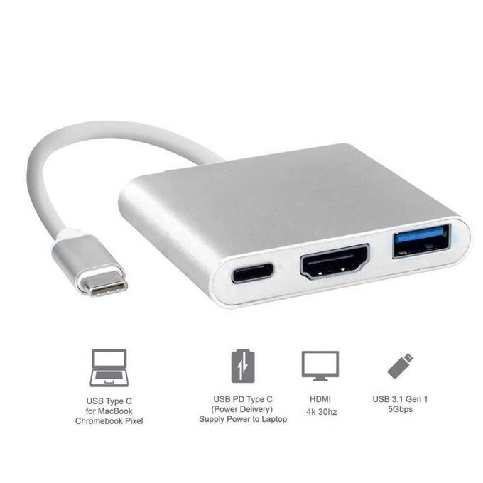 Type-C to HDMI 3 in 1 Adapter The USB-C Digital AV Multiport Adapter lets you connect your for Mac Book with USB-C port to an HDMI display, while also connecting a standard USB device and a USB-C charging cable. The device allows you to mirror you