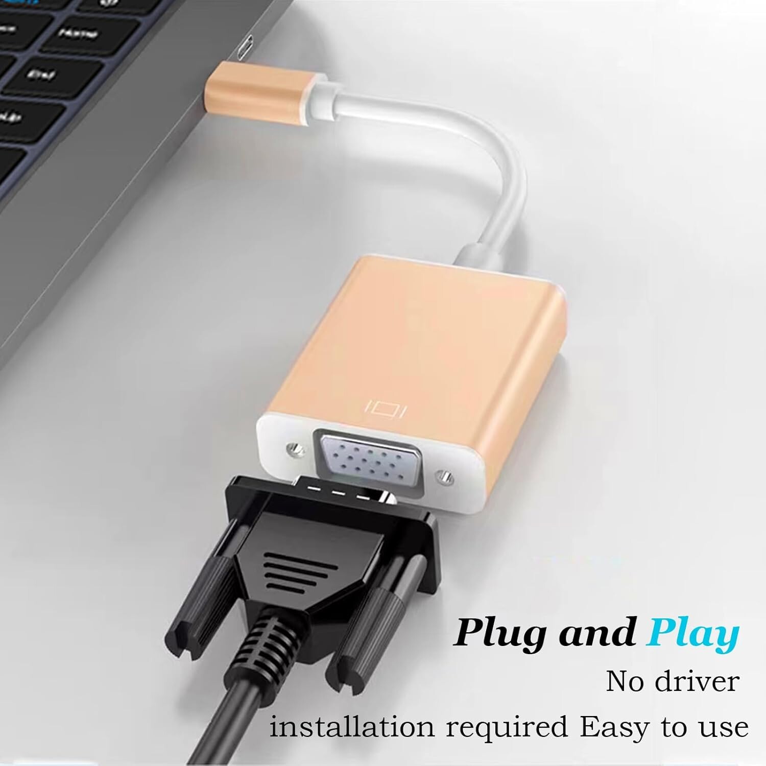 The compact-designed portable USB-C to VGA adapter connects a computer, desktop, laptop, or other devices with USB-C port to a monitor, projector, HDTV, or other devices with VGA port; Tuck this lightweight gadget into your bag or pocket to do a business p